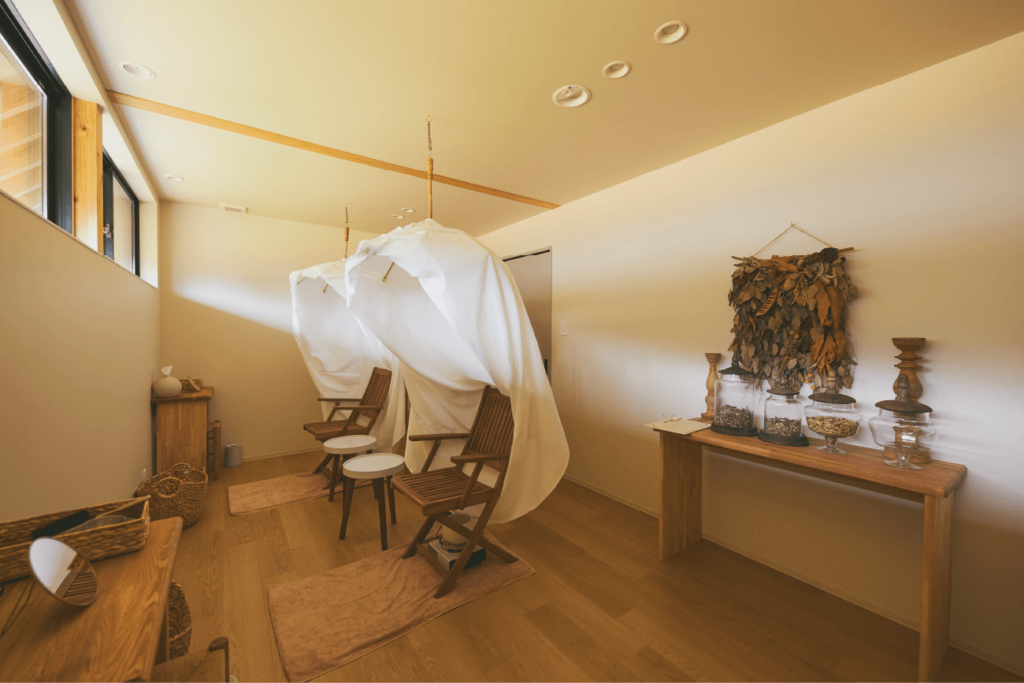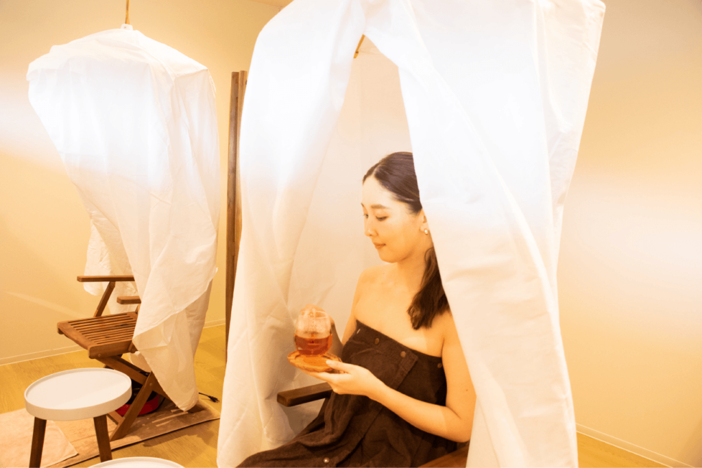 体を温めるよもぎ蒸しを提供しています。